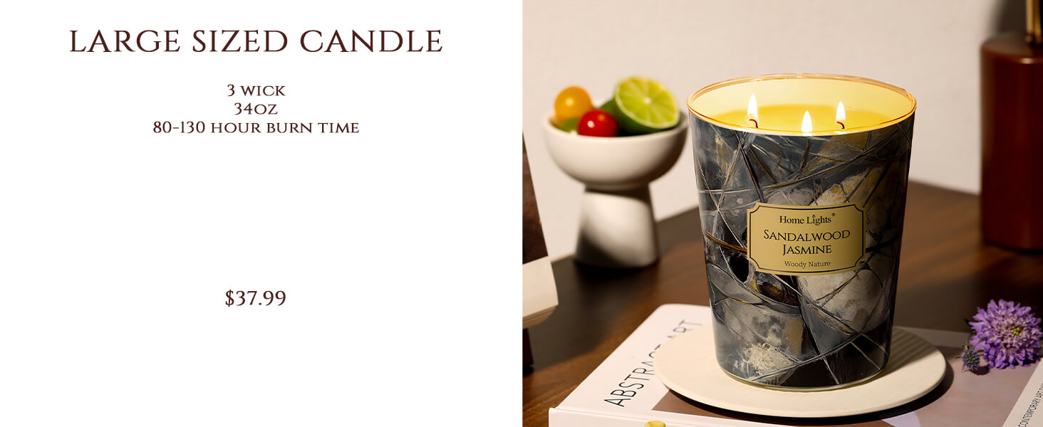 Absolutely love the Sandalwood Jasmine scent, and this 6.7oz size is ideal for my bedroom. The 1-wick burns slowly and evenly, and the throw is surprisingly strong for a smaller candle—it fills my whole room with that warm, creamy sandalwood and romantic jasmine aroma within about 30 minutes. It's the perfect size for trying a new scent without committing to a giant jar, but honestly, I'm already planning to buy the big one because I love it so much. Over 40 hours of burn time? Yes please!