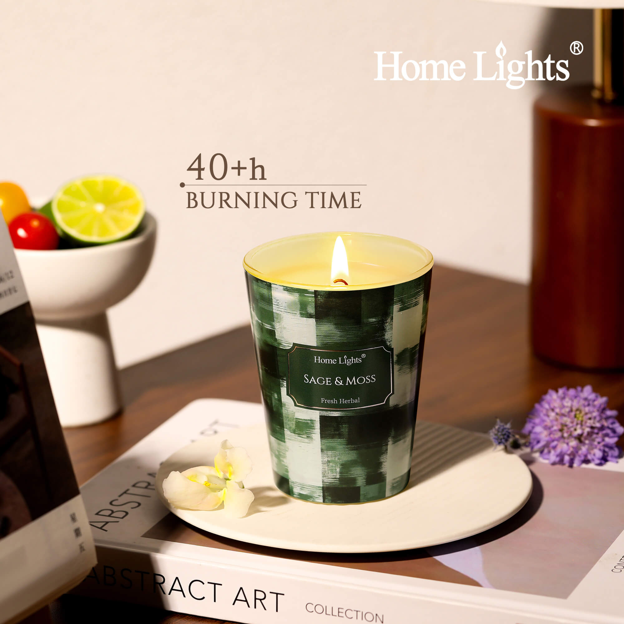 HomeLights Scented Candles for Women & Men, 6.7oz Candle Jars Aromatherapy Single Wick Candle, Ideal for Scandinavian Minimalist Design Home Decor and Gifts, Sage & Moss