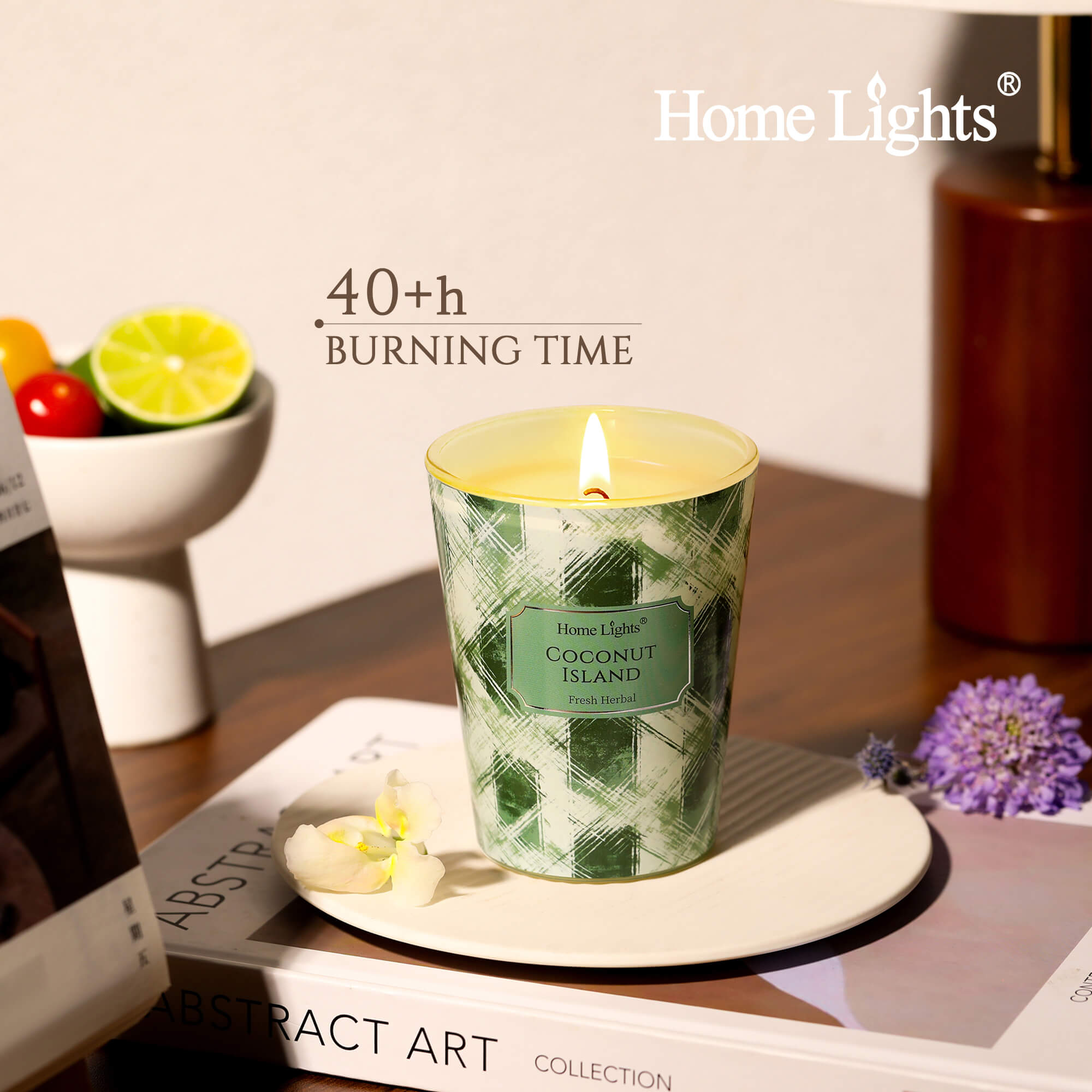 HomeLights 1-Wick Candles for Home Scented - 6.7oz Soy Wax Blend Candle Long-Lasting Fragrance, Scandinavian Minimalist Design Home Decor and Housewarming Gifts, Coconut Island