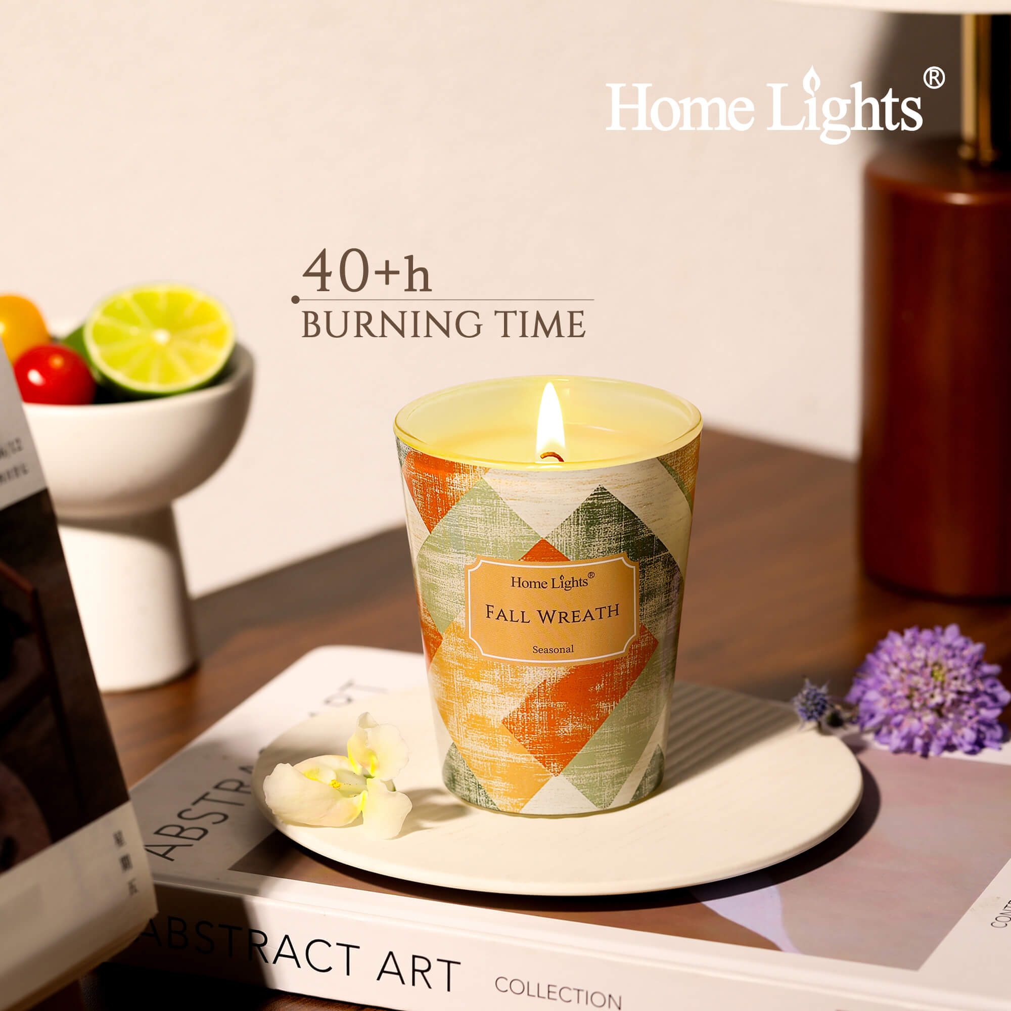 HomeLights Soy Wax Candles for Home Scented, 1-Wick Candles in Fall Wreath Scented, Rustic Modern Aromatherapy Candles Gift for Parties, Relaxing, 6.7oz