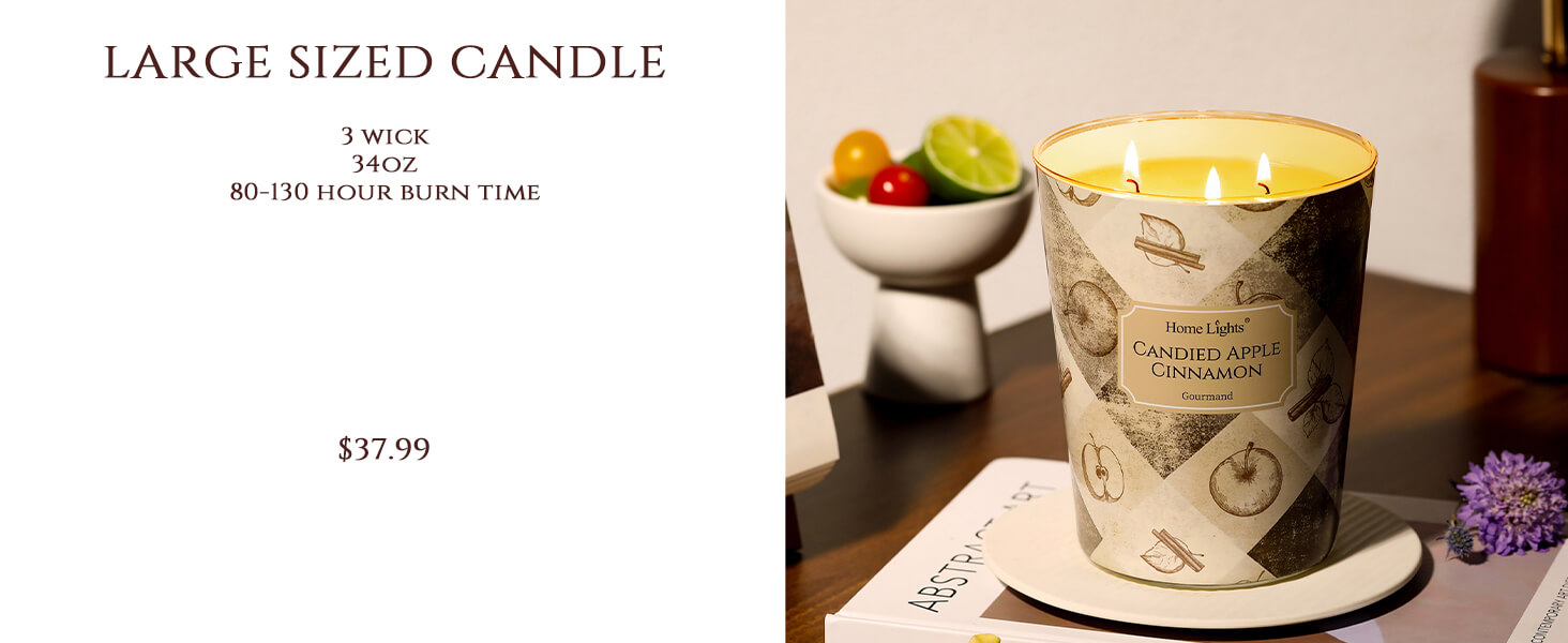 I live in a studio apartment and was worried the giant 34oz might be too much. This 6.7oz Candied Apple Cinnamon is absolutely perfect! The 1-wick fills my entire space with that warm, sweet, spicy aroma without overpowering. It's cozy and inviting—exactly what I want during the colder months. The burn is clean and even, and 40+ hours means I get weeks of enjoyment. Already planning to stock up on more fall scents!