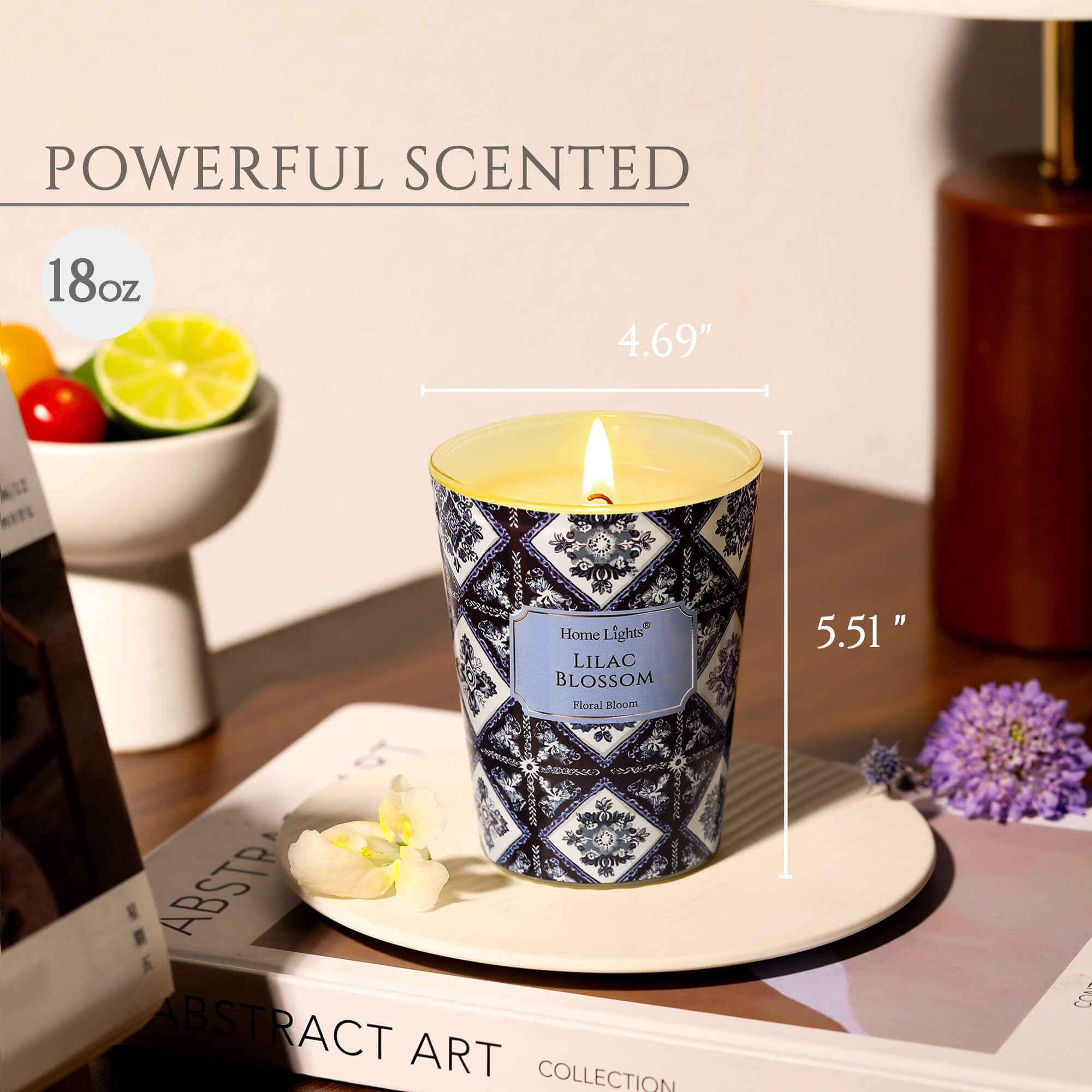HomeLights 1-Wick Candles for Home Scented - 6.7oz Soy Wax Blend Candle Long-Lasting Fragrance, Bohemian Natural Textures Home Decor and Housewarming Gifts, Lilac Blossom