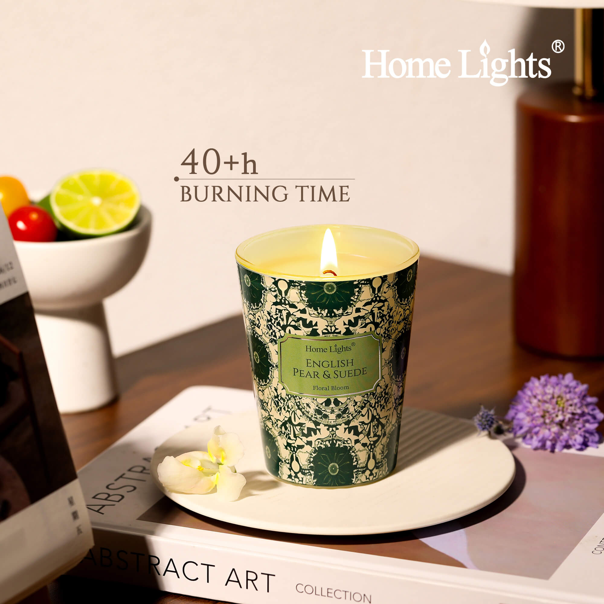 HomeLights Soy Wax Candles for Home Scented, 1-Wick Candles in English Pear & Suede Scented, Aromatherapy Candles Gift for Parties, Relaxing, Bohemian Natural Textures, 6.7oz