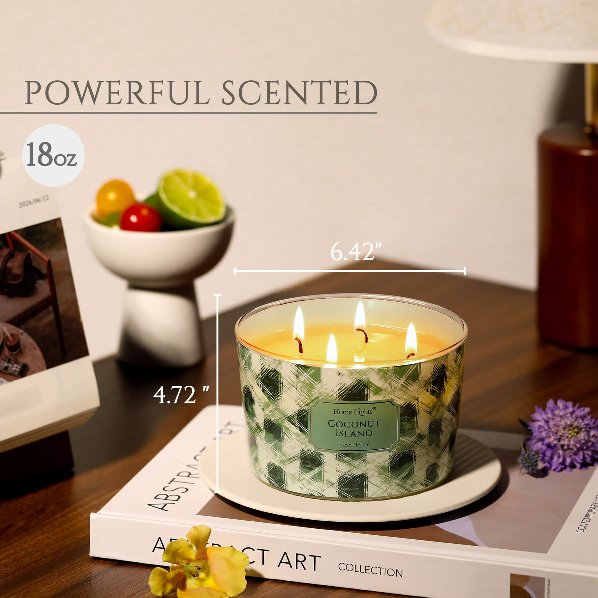 HomeLights 4-Wick Candles for Home Scented - 18oz Soy Wax Blend Candle Long-Lasting Fragrance, Scandinavian Minimalist Design Home Decor and Housewarming Gifts, Coconut Island