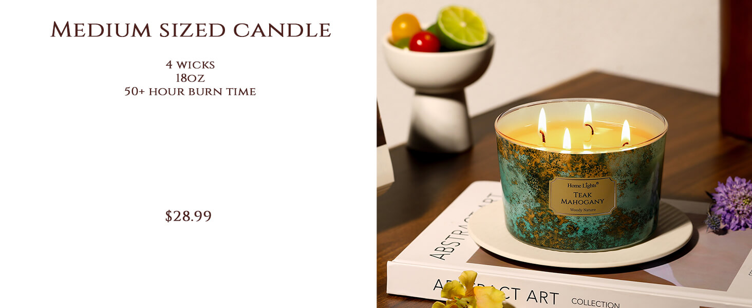 Rich teak and warm mahogany—like a high-end furniture showroom. The 3 wicks burn evenly and fill the room fast. Perfect for living rooms and studies. Highly recommend for anyone who loves authentic wood scents!