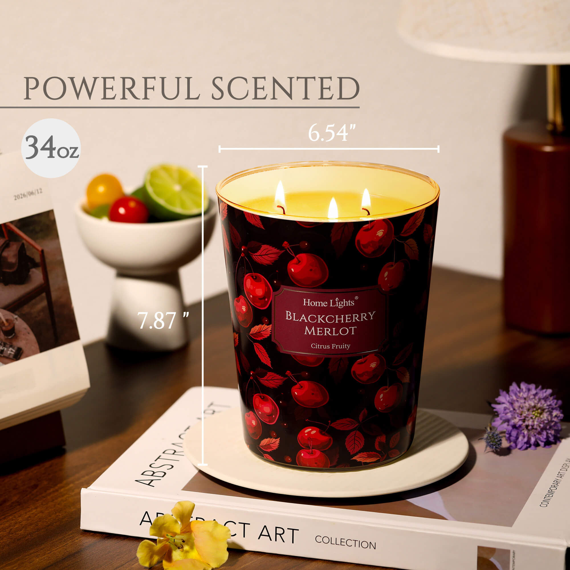 HomeLights Soy Wax Candles for Home Scented, 3-Wick Candles in Blackcherry Merlot Scented, Aromatherapy Candles Gift for Parties, Relaxing, Eclectic Mixed Styles, 34oz