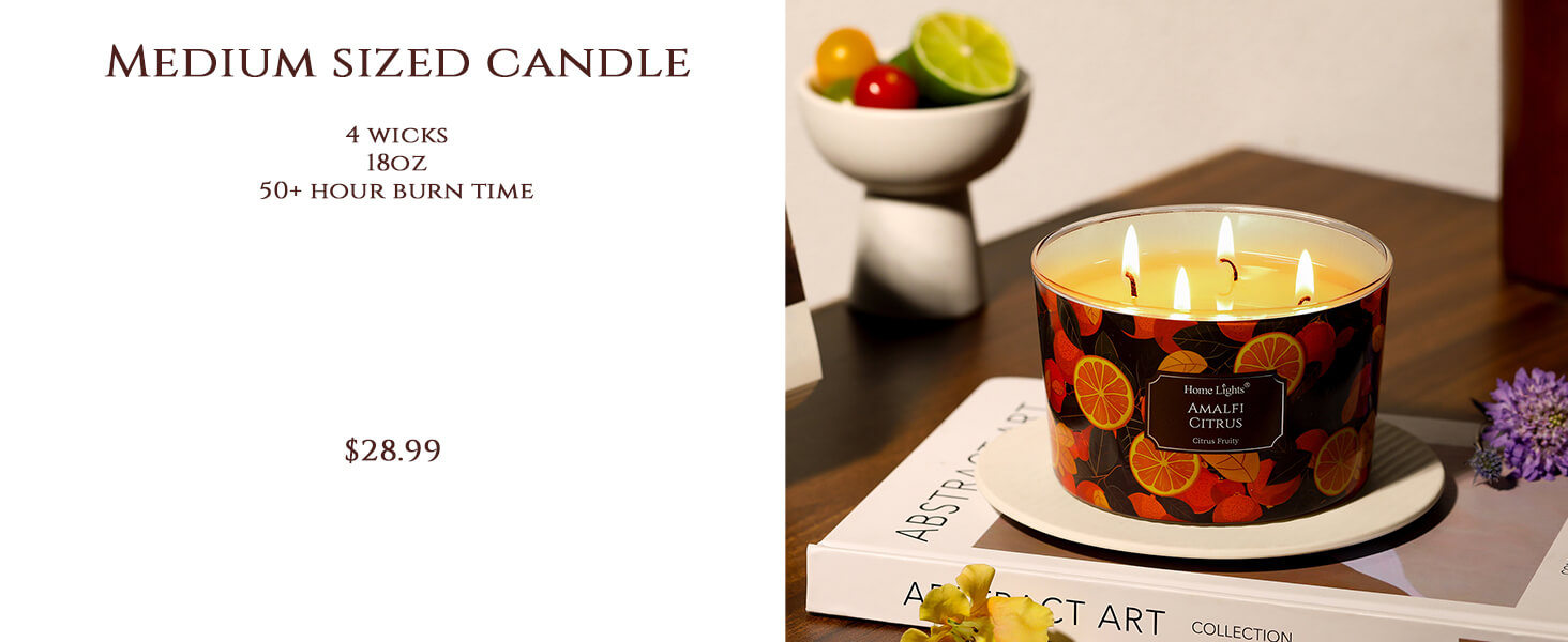 The 3-wick design is a game changer for a candle this size; it burns super evenly and the scent spreads quickly. The jar is beautiful and sturdy. It arrived very well packaged. Worth every penny for the 34oz size. Will definitely be buying more scents from HomeLights!
