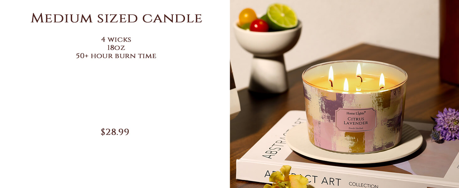 unique blend! The citrus wakes me up while the lavender keeps me calm. Perfect for mornings. The 3 wicks burn evenly and the 34oz size lasts forever. My new favorite for working from home!