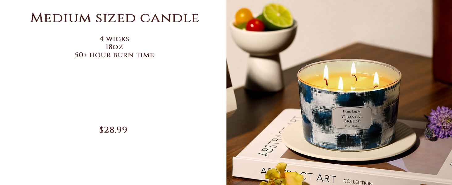 I have a whole collection of candles but this Coastal Breeze is the one I reach for most often. It's just so clean and refreshing—like fresh laundry mixed with ocean air. Never gives me a headache, never feels heavy. The 3-wick design gives fantastic coverage and the burn is perfectly even. 34oz lasts a good while. This will be a permanent staple in my home. Love it!