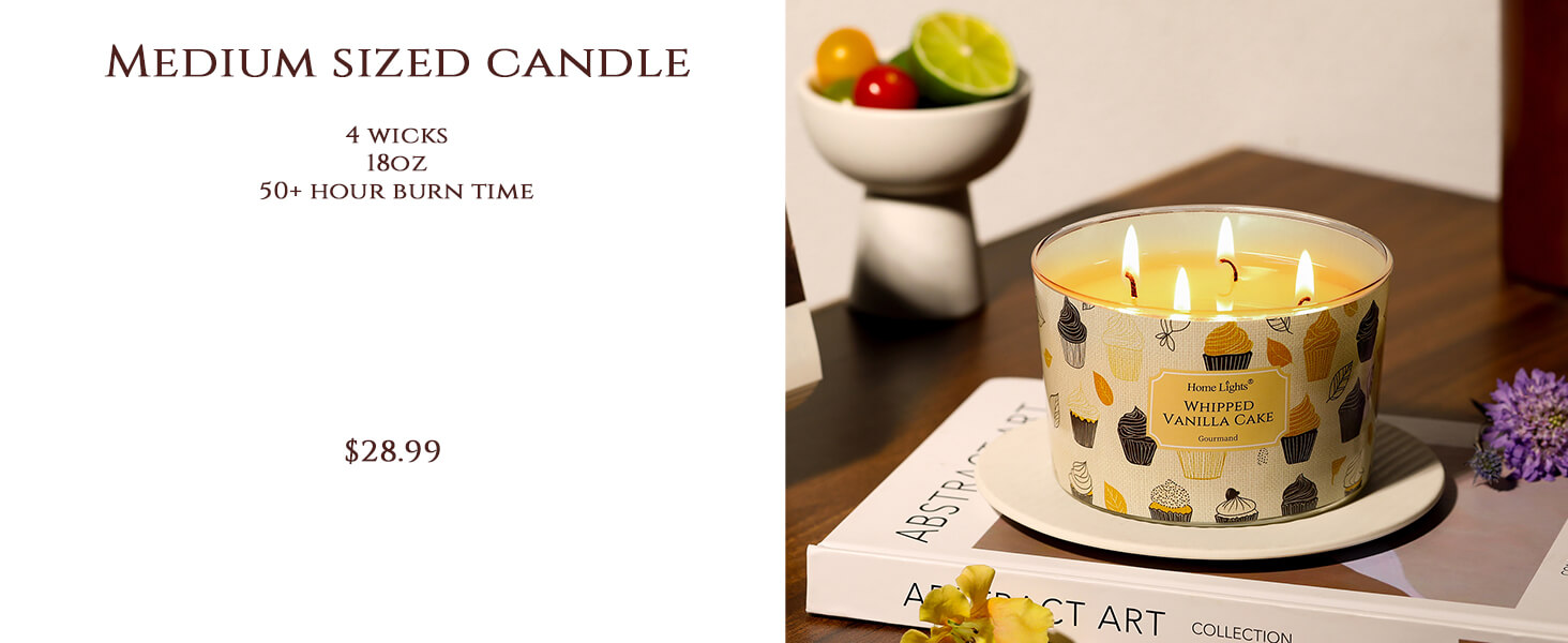 The 34oz size is generous and the 3-wick design fills my whole kitchen within minutes. Burns evenly with no tunneling. I lit this for my daughter's birthday and everyone asked what I was baking. My new favorite celebration candle!