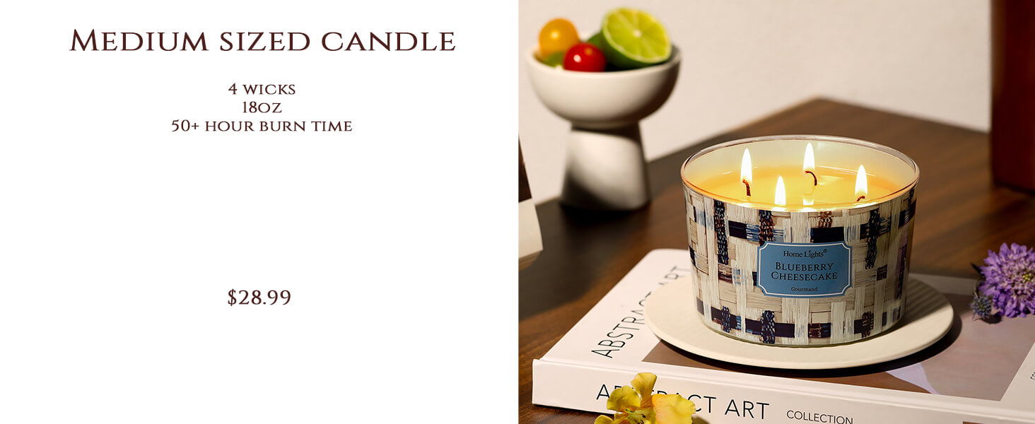 I keep this candle in my kitchen and it makes the whole room feel warm and inviting. The blueberry and cheesecake notes are perfectly balanced—sweet but not artificial, fruity but not sharp. My family walks in and immediately asks what I'm baking. The 3-wick design gives fantastic coverage and the burn is perfectly even. 34oz lasts a good while. Highly recommend for anyone who loves dessert scents!