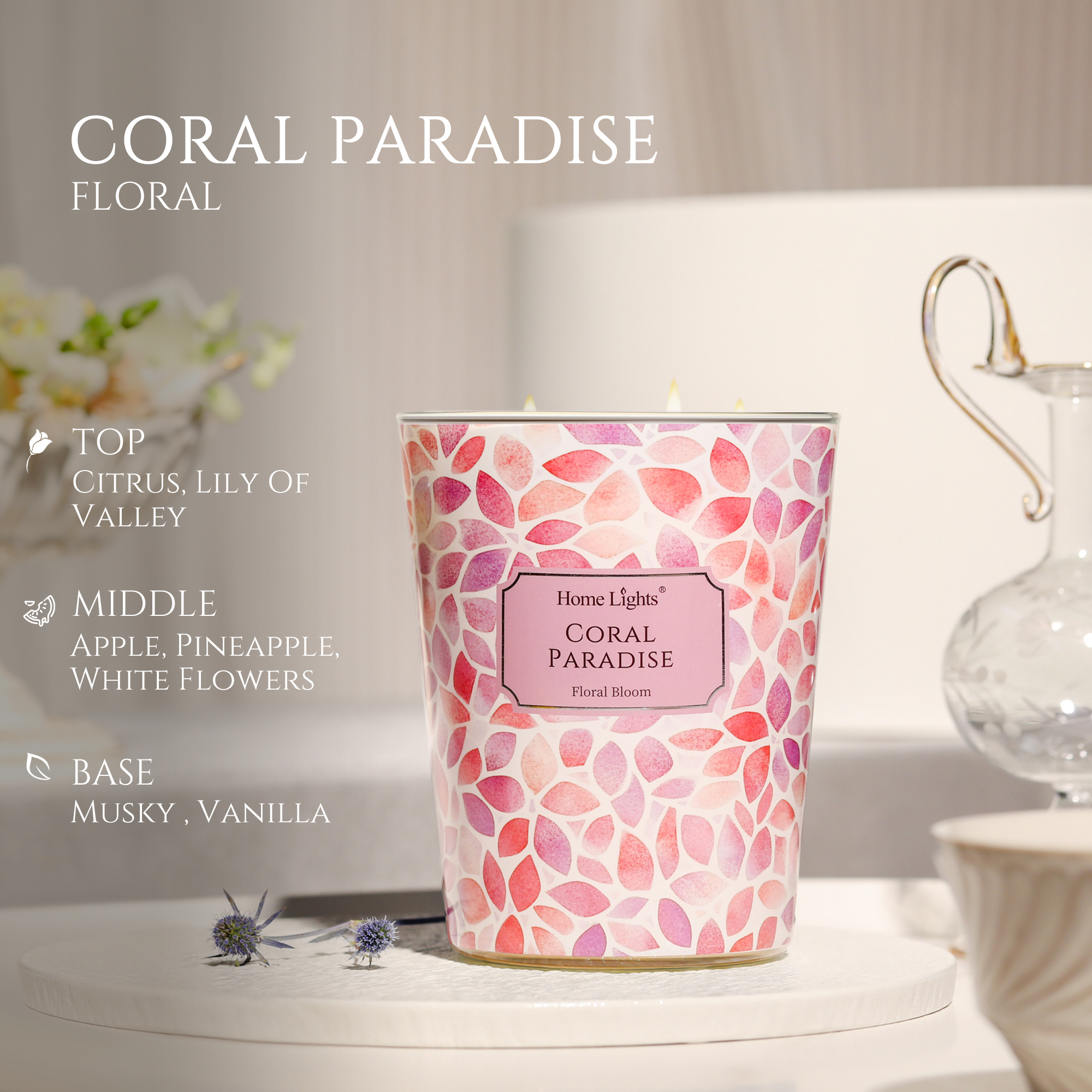 I'm always searching for candles that capture that perfect tropical vibe without being too coconut-heavy or sunscreen-like. This Coral Paradise is exactly what I've been looking for. It's fruity and floral in the most beautiful way—like a bouquet of tropical blooms mixed with juicy citrus and a hint of ocean breeze. It's uplifting without being overwhelming, sweet without being cloying. I keep it in my bedroom and it makes waking up feel like a vacation.