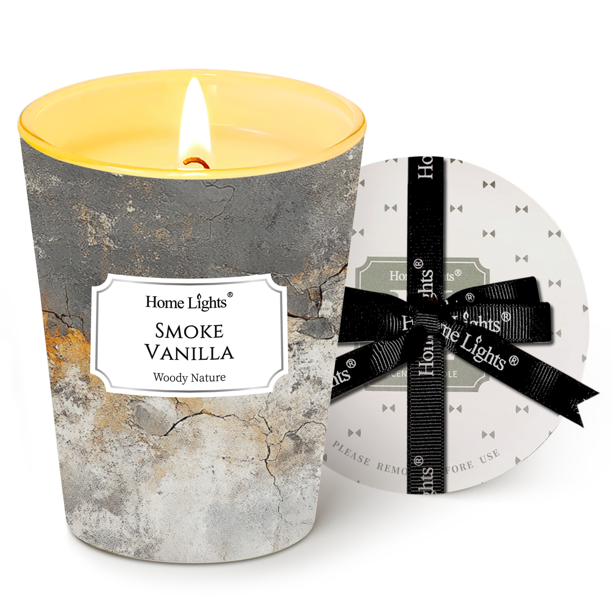 HomeLights Large jar Candle | 1-Wick Long-Lasting Scented Candles, 6.7oz Natural Soy Wax Candle for Home Scented, Industrial Chic Gifts for Women & Men, Smoke Vanilla
