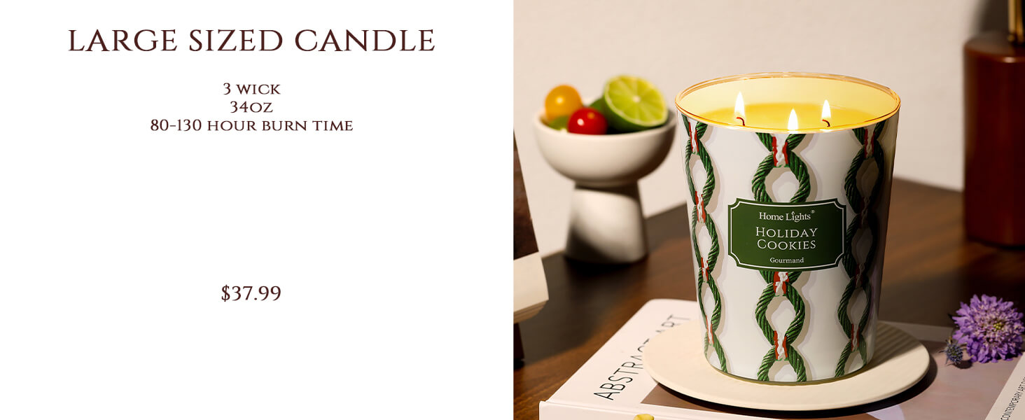 I put this candle on my mantle with my Christmas decorations and it pulls the whole look together. The holiday cookies scent makes my living room smell like the holidays even before I start baking.
