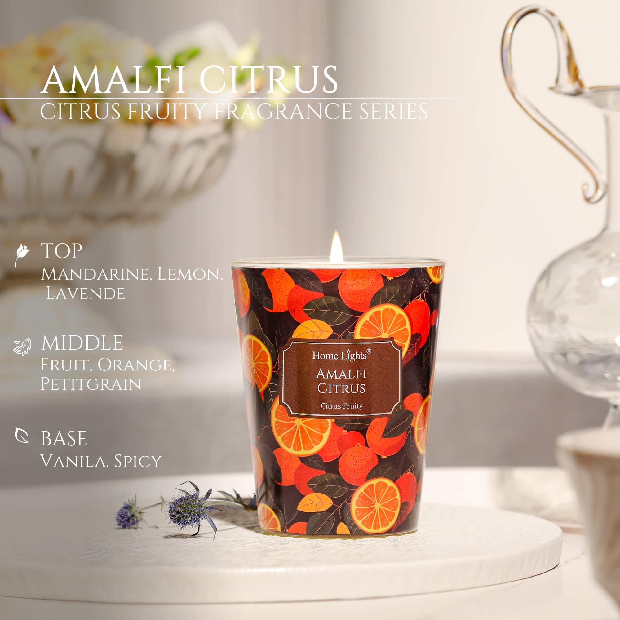 HomeLights 1-Wick Candles for Home Scented - 6.7oz Soy Wax Blend Candle Long-Lasting Fragrance, Eclectic Mixed Styles Home Decor and Housewarming Gifts, Amalfi Citrus