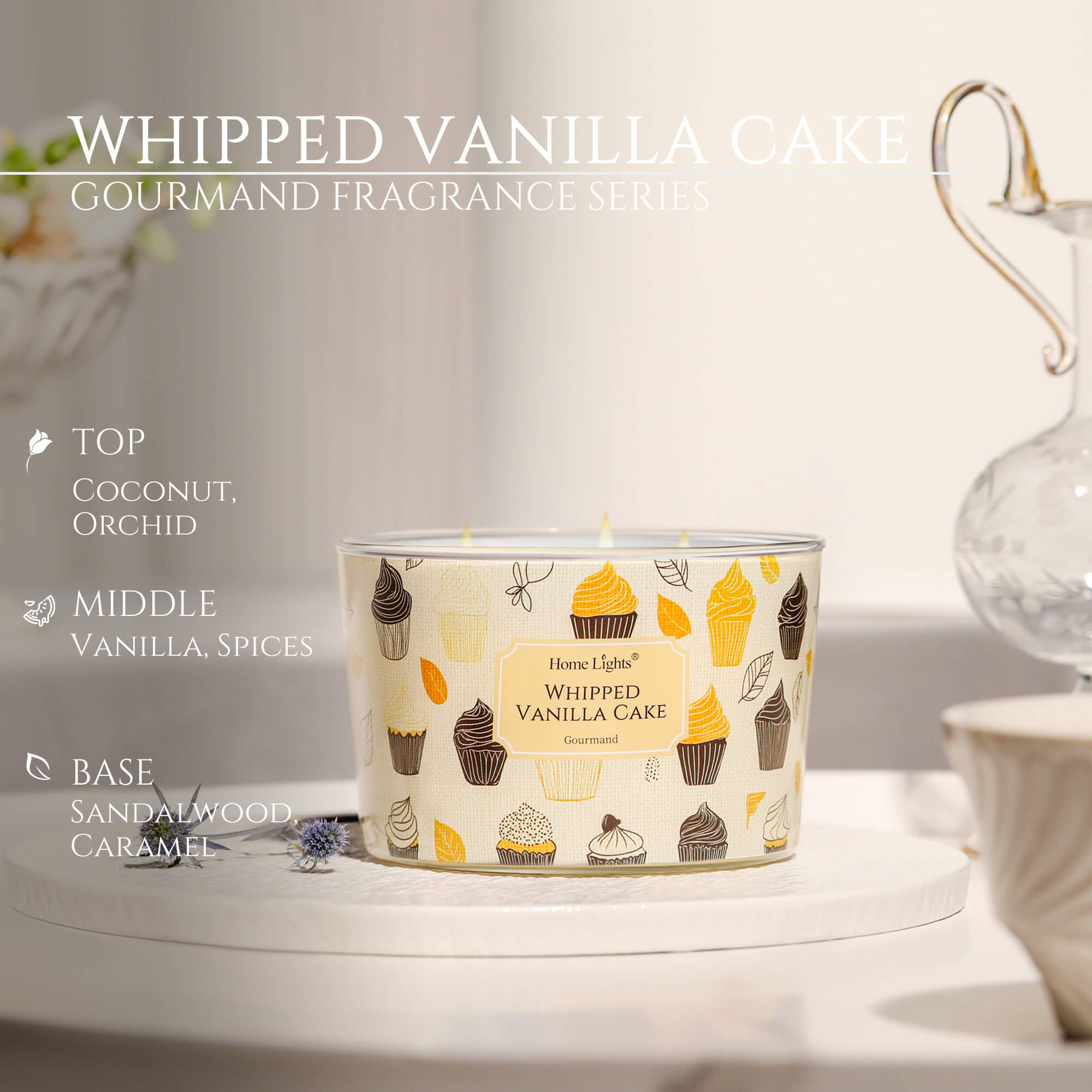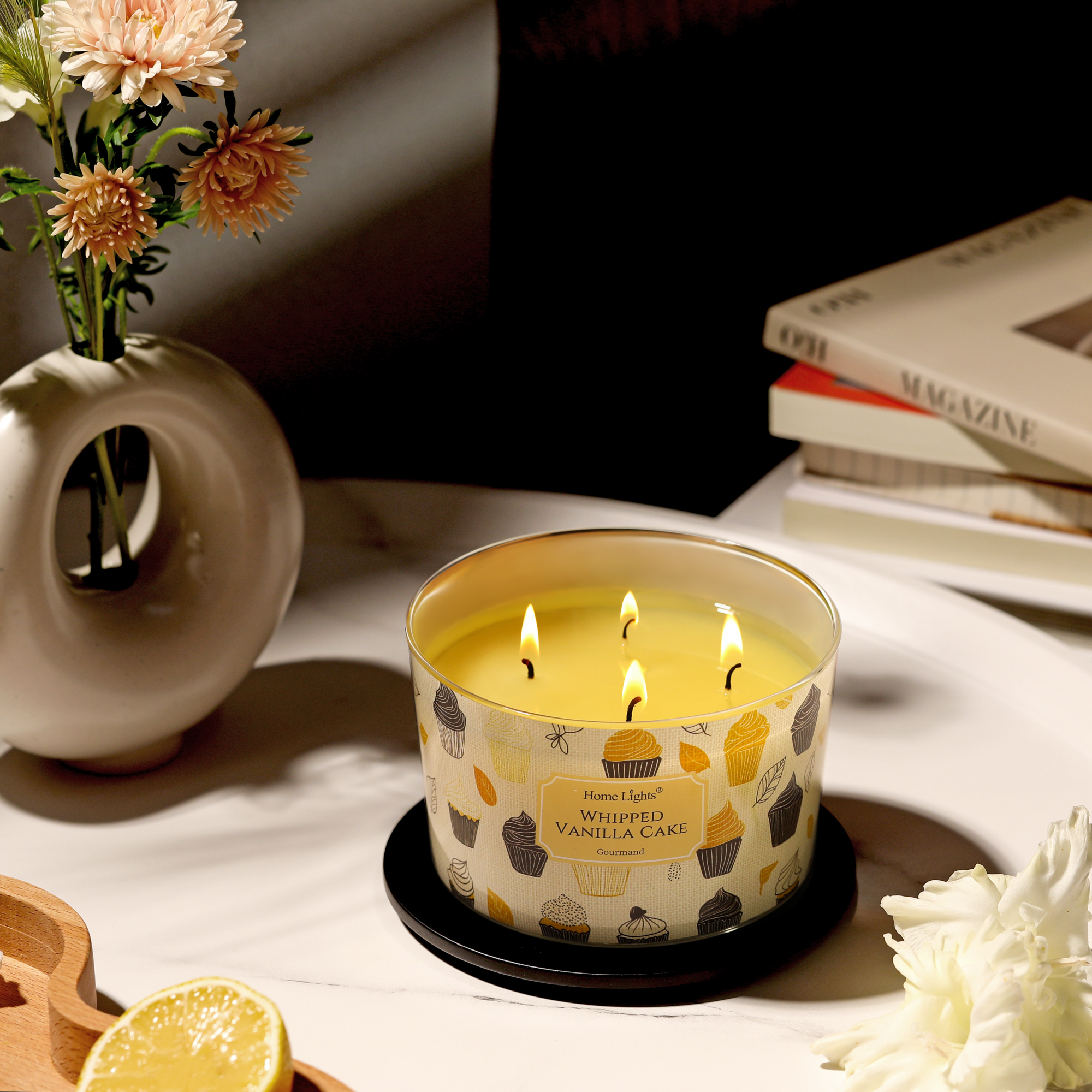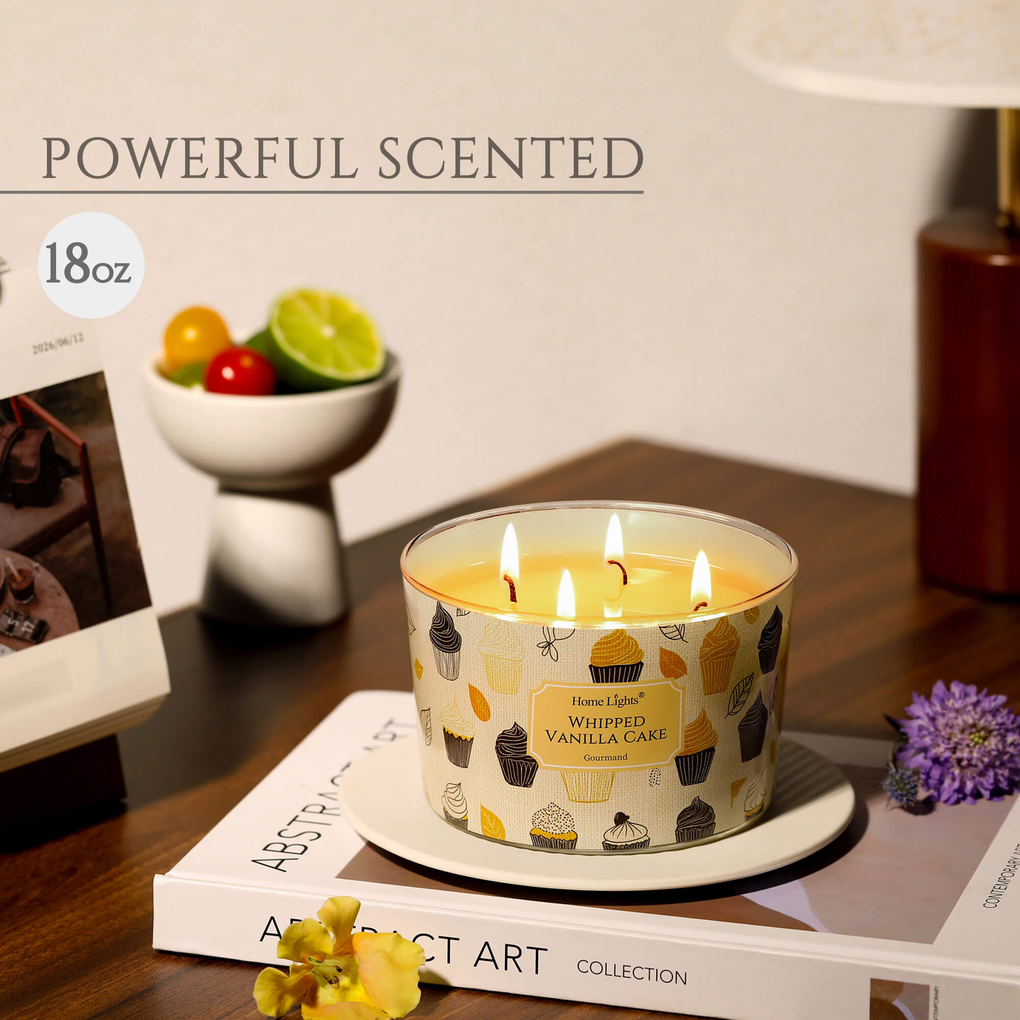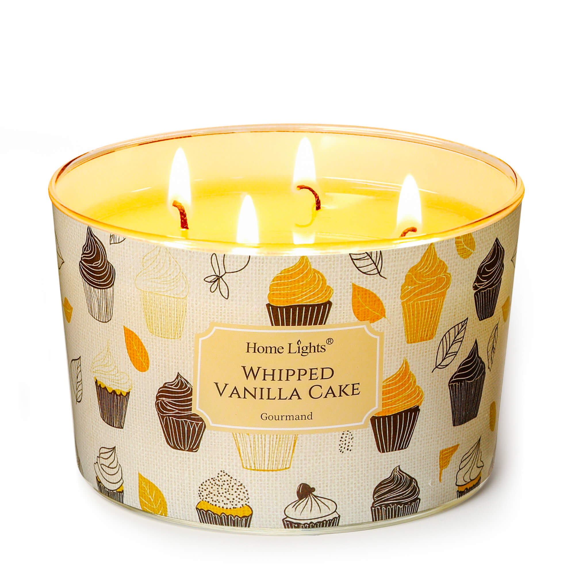 HomeLights Scented Candles for Women & Men, 18oz Candle Jars Aromatherapy 4-Wick Candle, Ideal for Rustic Modern Home Decor and Gifts, Whipped Vanilla Cake