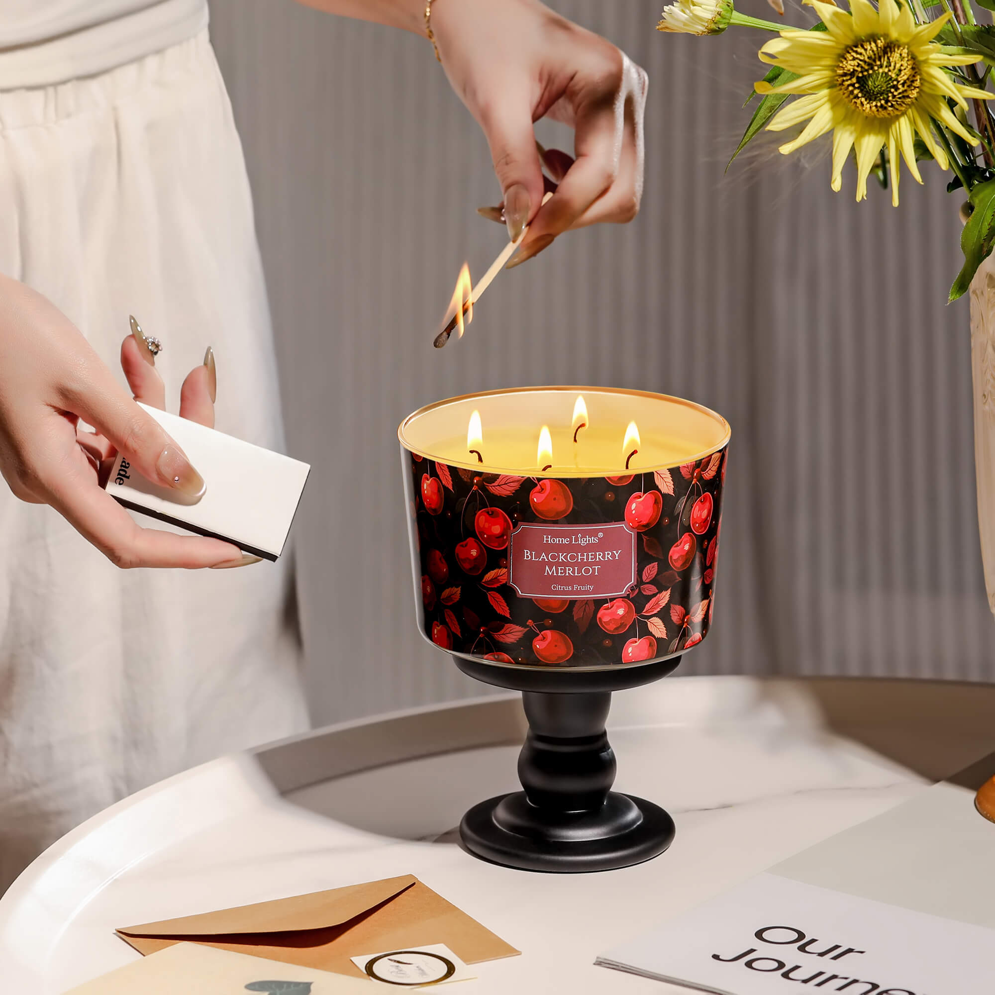 HomeLights Soy Wax Candles for Home Scented, 4-Wick Candles in Blackcherry Merlot Scented, Aromatherapy Candles Gift for Parties, Relaxing, Eclectic Mixed Styles, 18oz