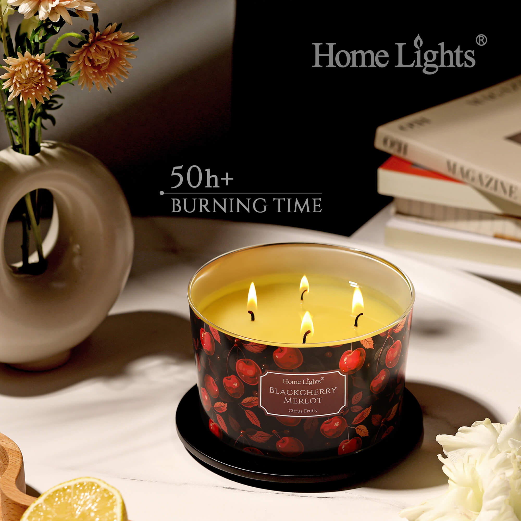 • 【4-Wick Citrus Fruity Scented Candle】A vibrant blend of zesty citrus and sweet fruity notes creates an energizing yet comforting aroma. Four lead-free cotton wicks ensure a powerful fragrance throw, filling any room with freshness.