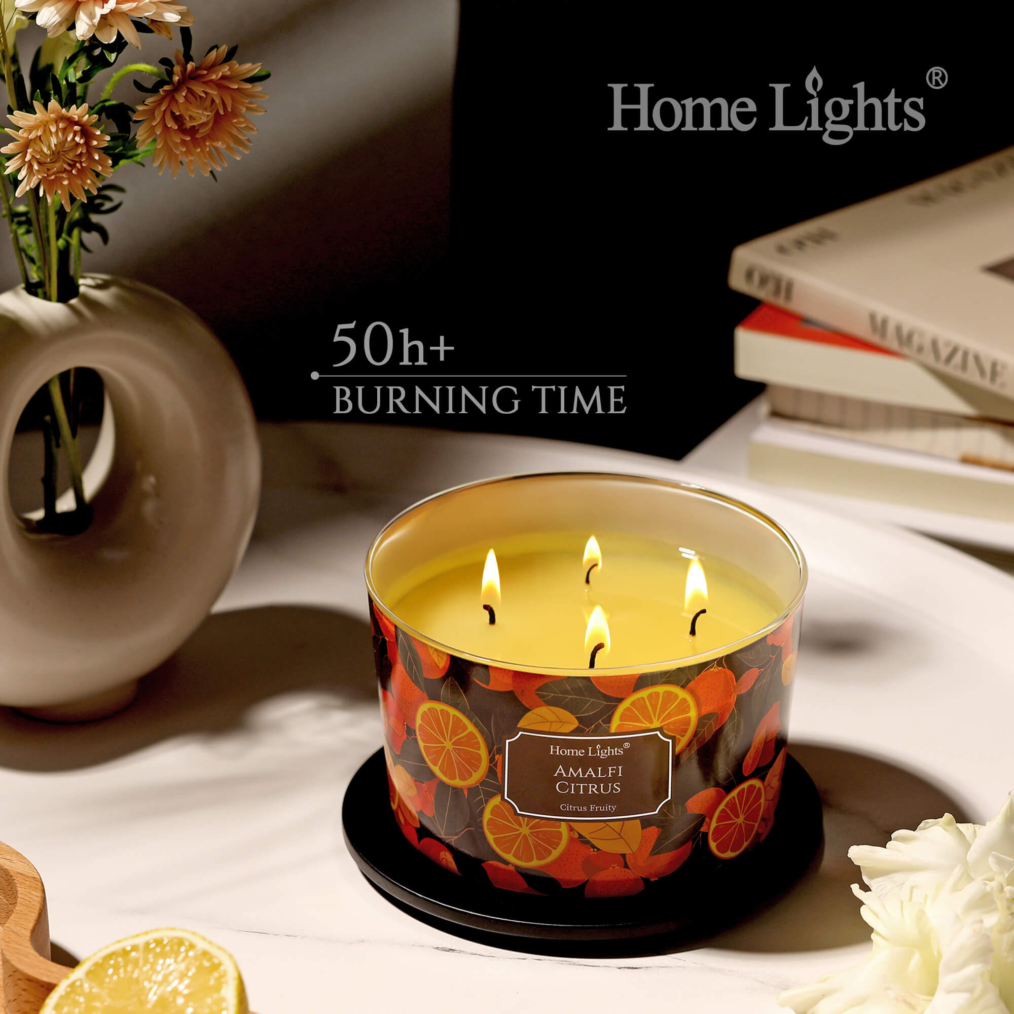 HomeLights 4-Wick Candles for Home Scented - 18oz Soy Wax Blend Candle Long-Lasting Fragrance, Eclectic Mixed Styles Home Decor and Housewarming Gifts, Amalfi Citrus