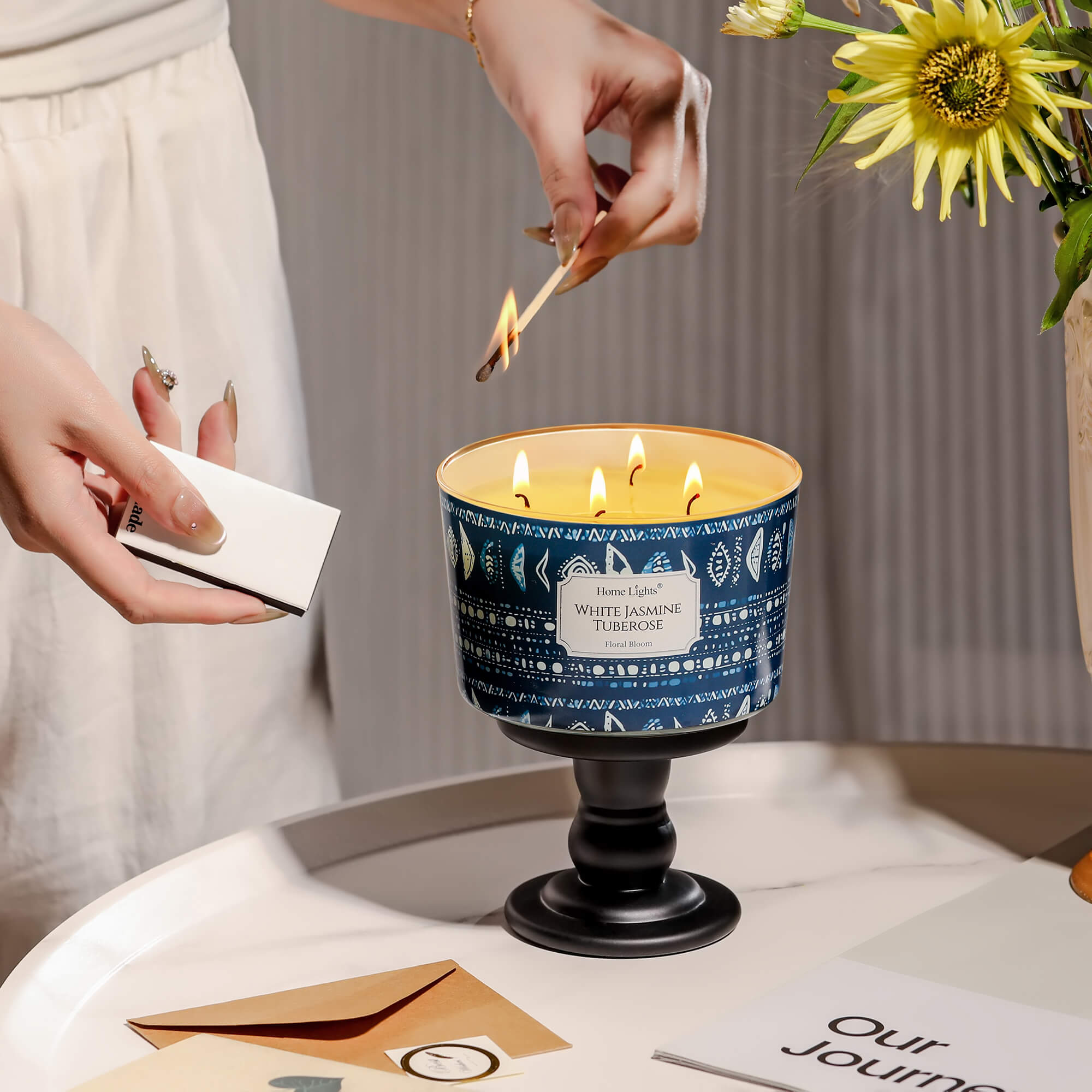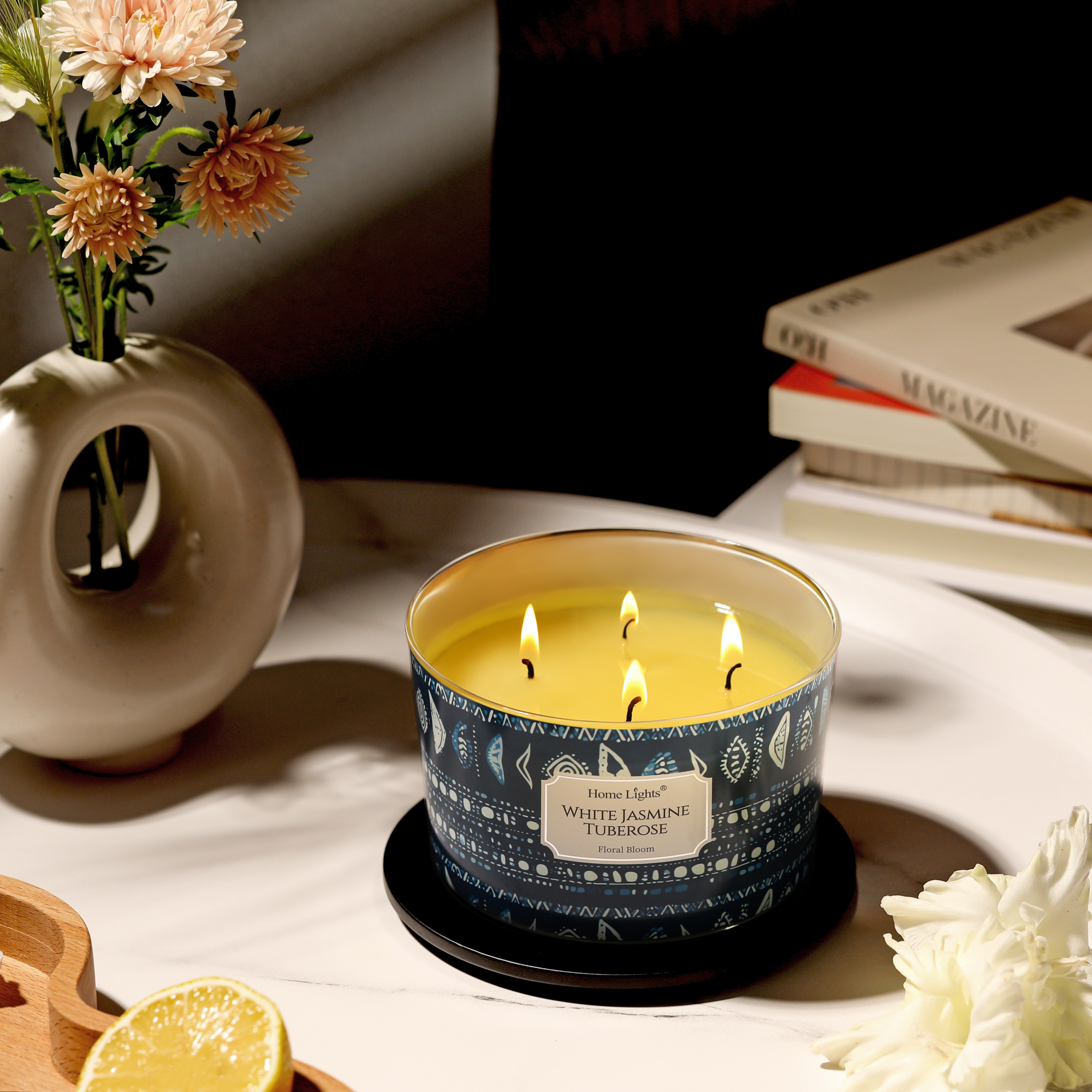 HomeLights Scented Candles for Women & Men, 18oz Candle Jars Aromatherapy 4-Wick Candle, Ideal for Bohemian Natural Textures Home Decor and Gifts, White Jasmine Tuberose