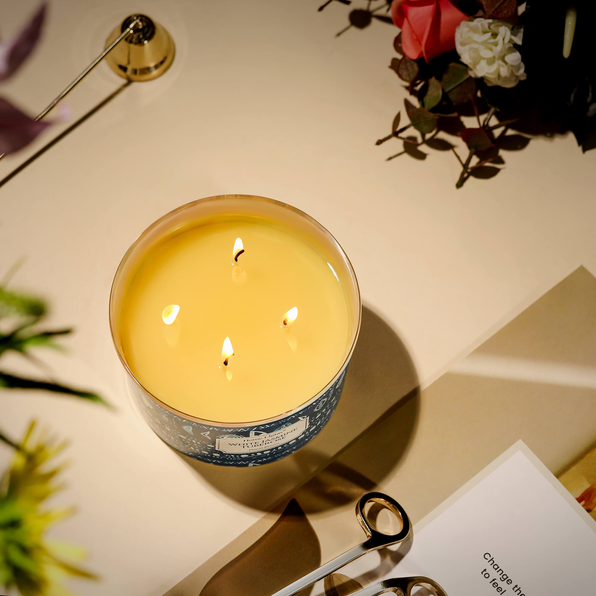 • 【4-Wick Premium Candle】Four lead-free, self-trimming cotton wicks ensure an ultra-even burn and intense fragrance dispersion, specially designed to fill expansive spaces with rich, consistent aroma.