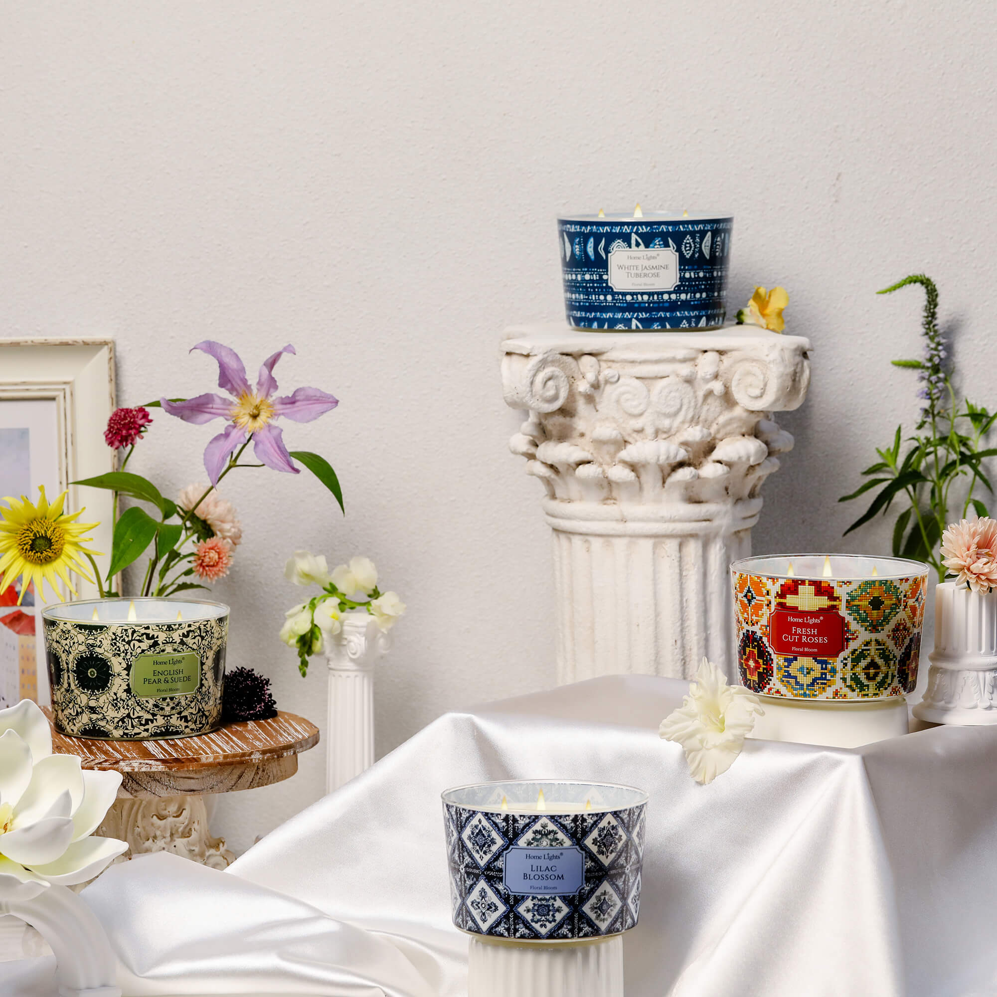 Picture of HomeLights Scented Candles for Women & Men, 18oz Candle Jars Aromatherapy 4-Wick Candle, Ideal for Bohemian Natural Textures Home Decor and Gifts, White Jasmine Tuberose