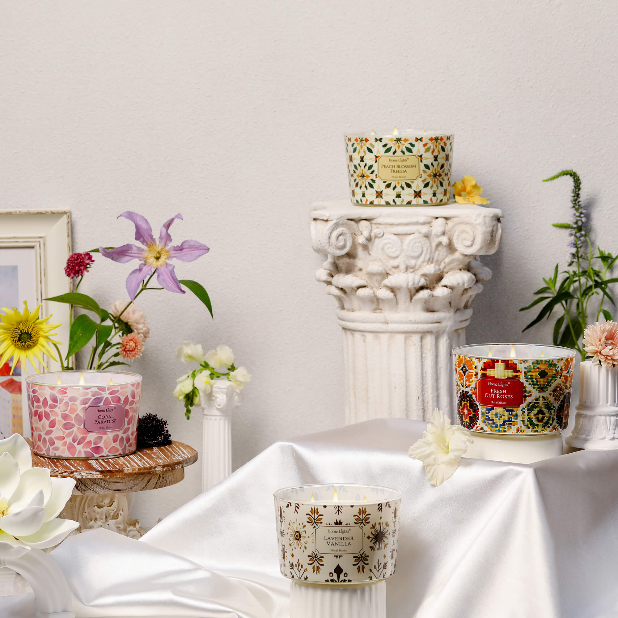 HomeLights Coral Paradise Scented Candles | 18oz Soy Candles Bohemian Natural Textures 4-Wick Large Candle Jars | Ideal Candle Gifts for Events, Home Decor Stress, Relief & Relaxation