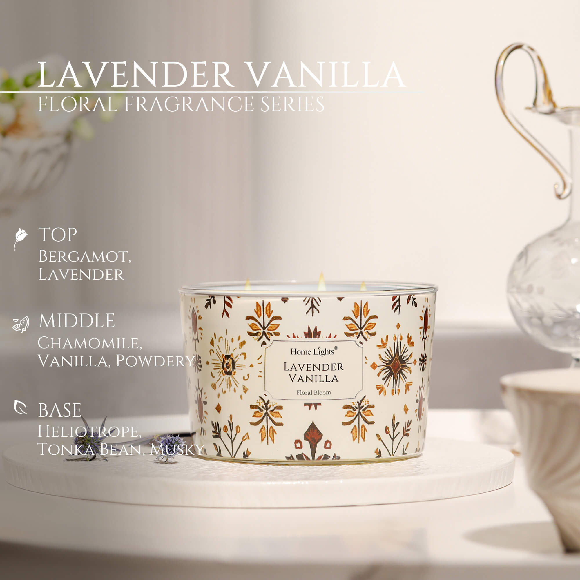 HomeLights Large jar Candle | 4-Wick Long-Lasting Scented Candles, 18oz Natural Soy Wax Candle for Home Scented, Bohemian Natural Textures Gifts for Women & Men, Lavender Vanilla
