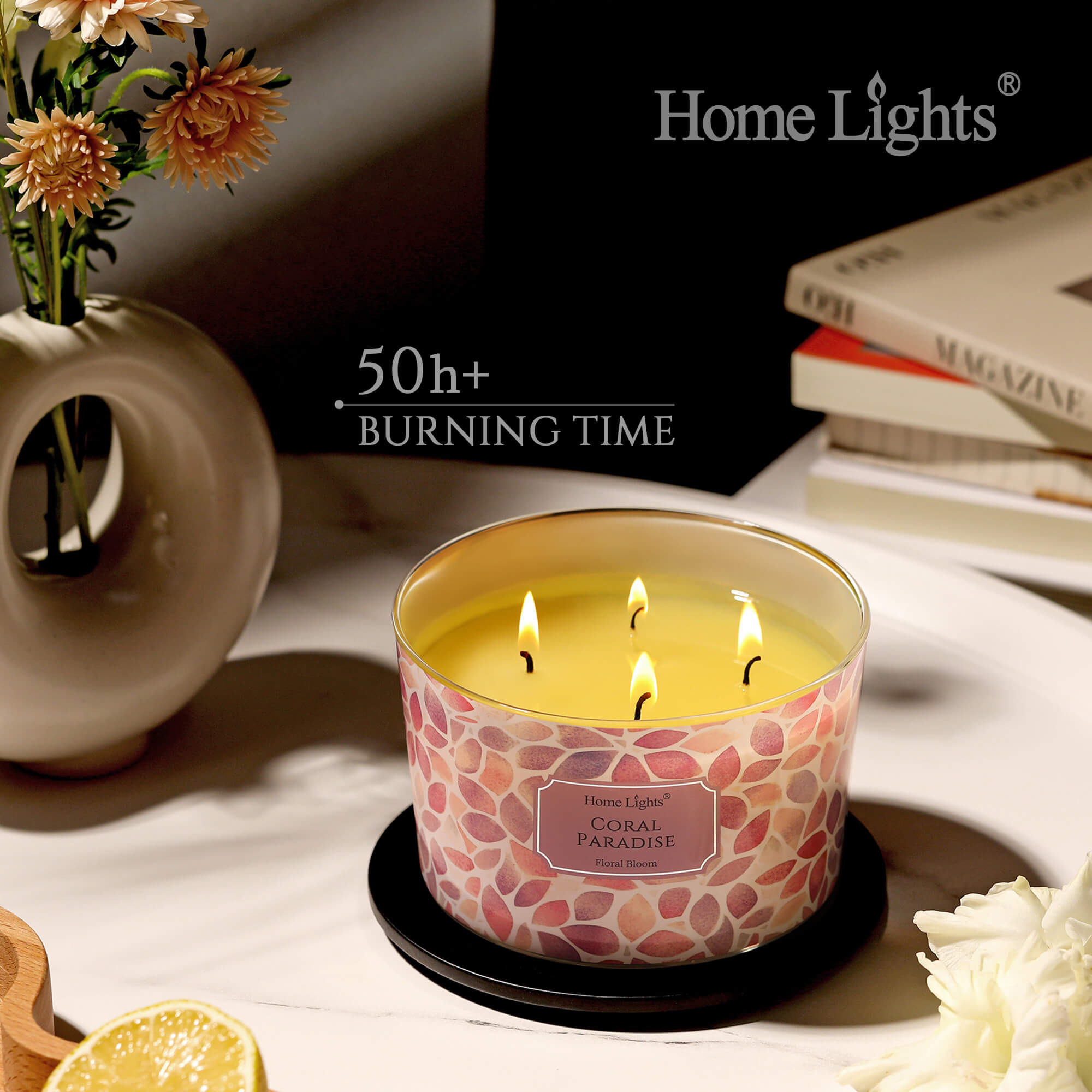 HomeLights Coral Paradise Scented Candles | 18oz Soy Candles Bohemian Natural Textures 4-Wick Large Candle Jars | Ideal Candle Gifts for Events, Home Decor Stress, Relief & Relaxation