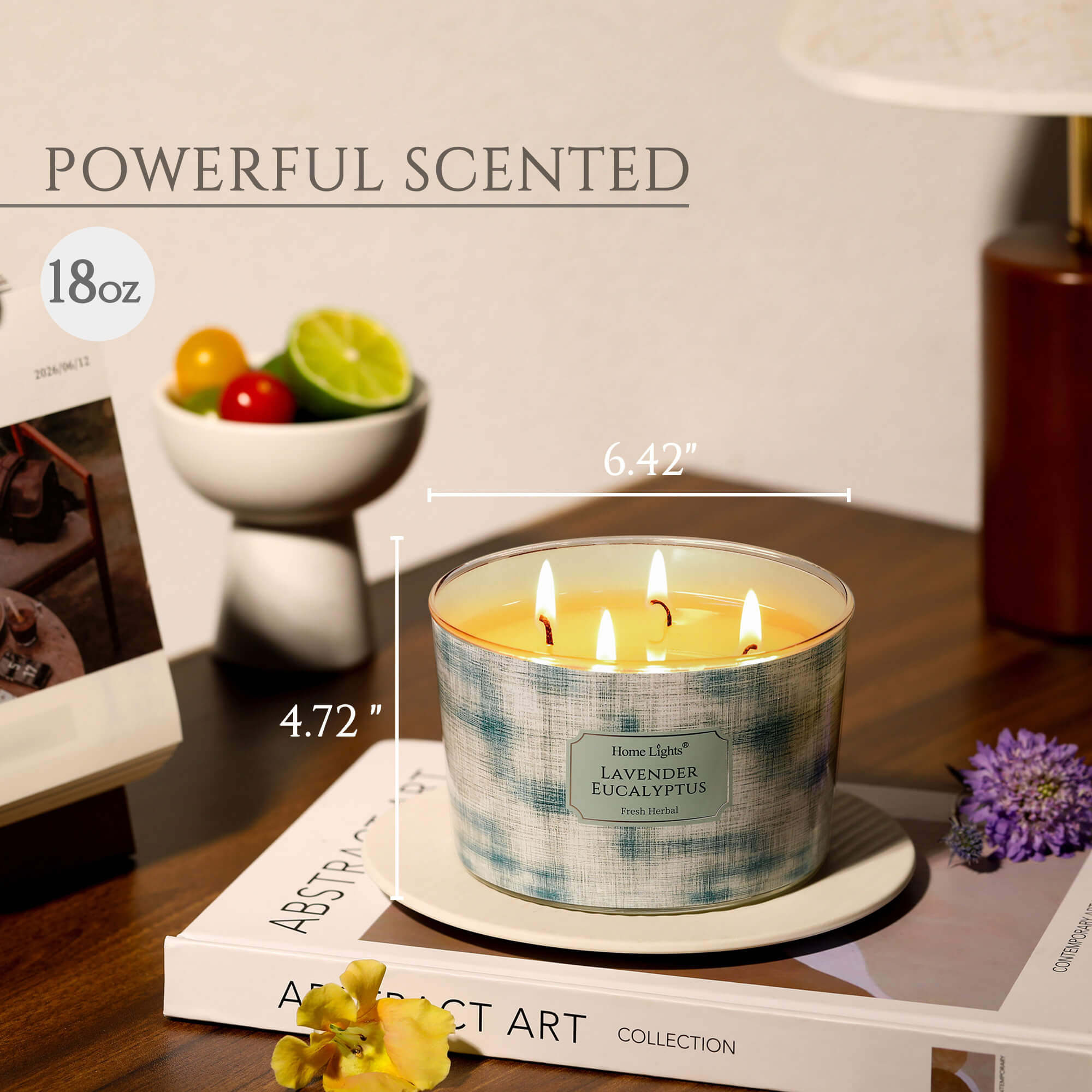 HomeLights Soy Wax Candles for Home Scented, 4-Wick Candles in Lavender Eucalyptus Scented, Aromatherapy Candles Gift for Parties, Relaxing, Scandinavian Minimalist Design, 18oz