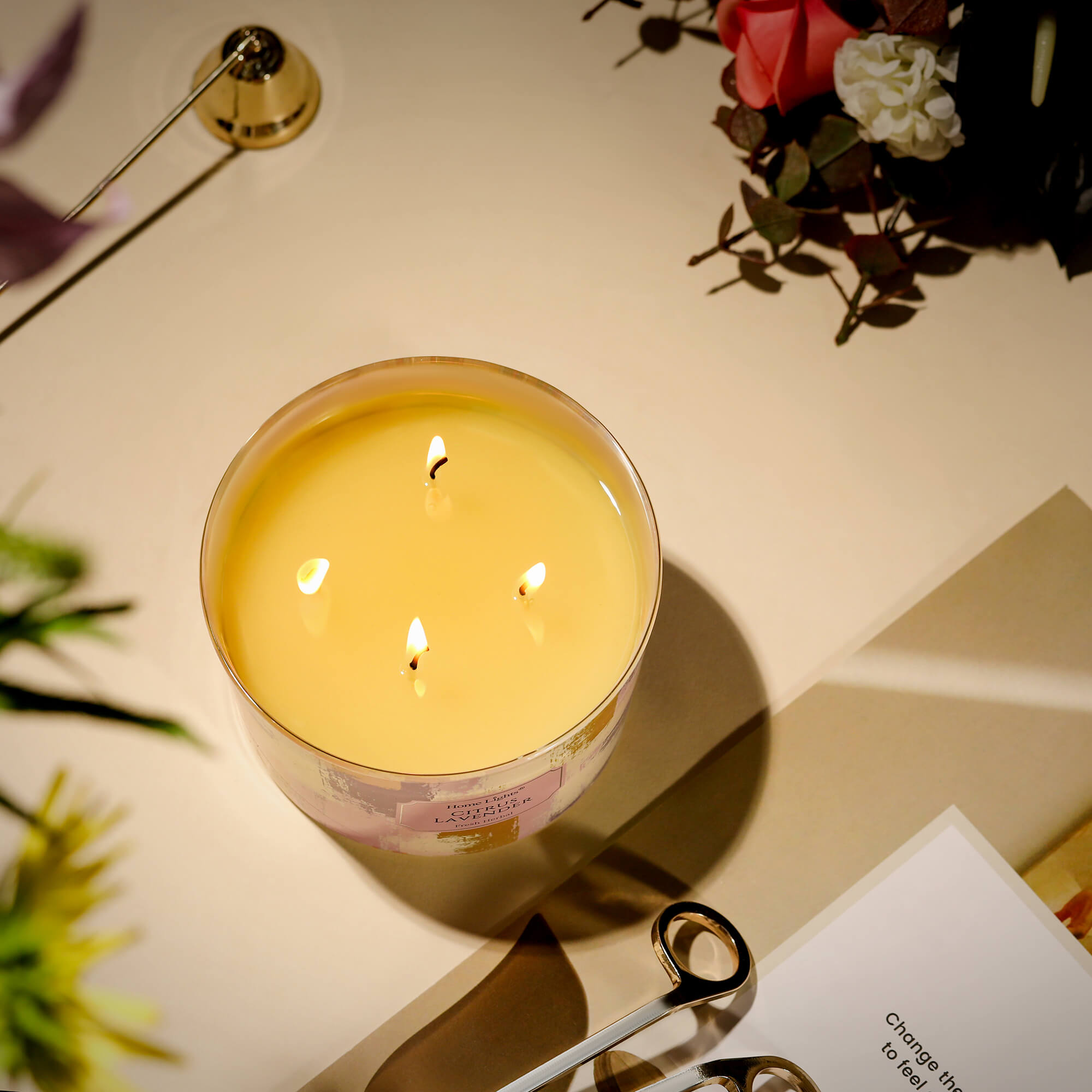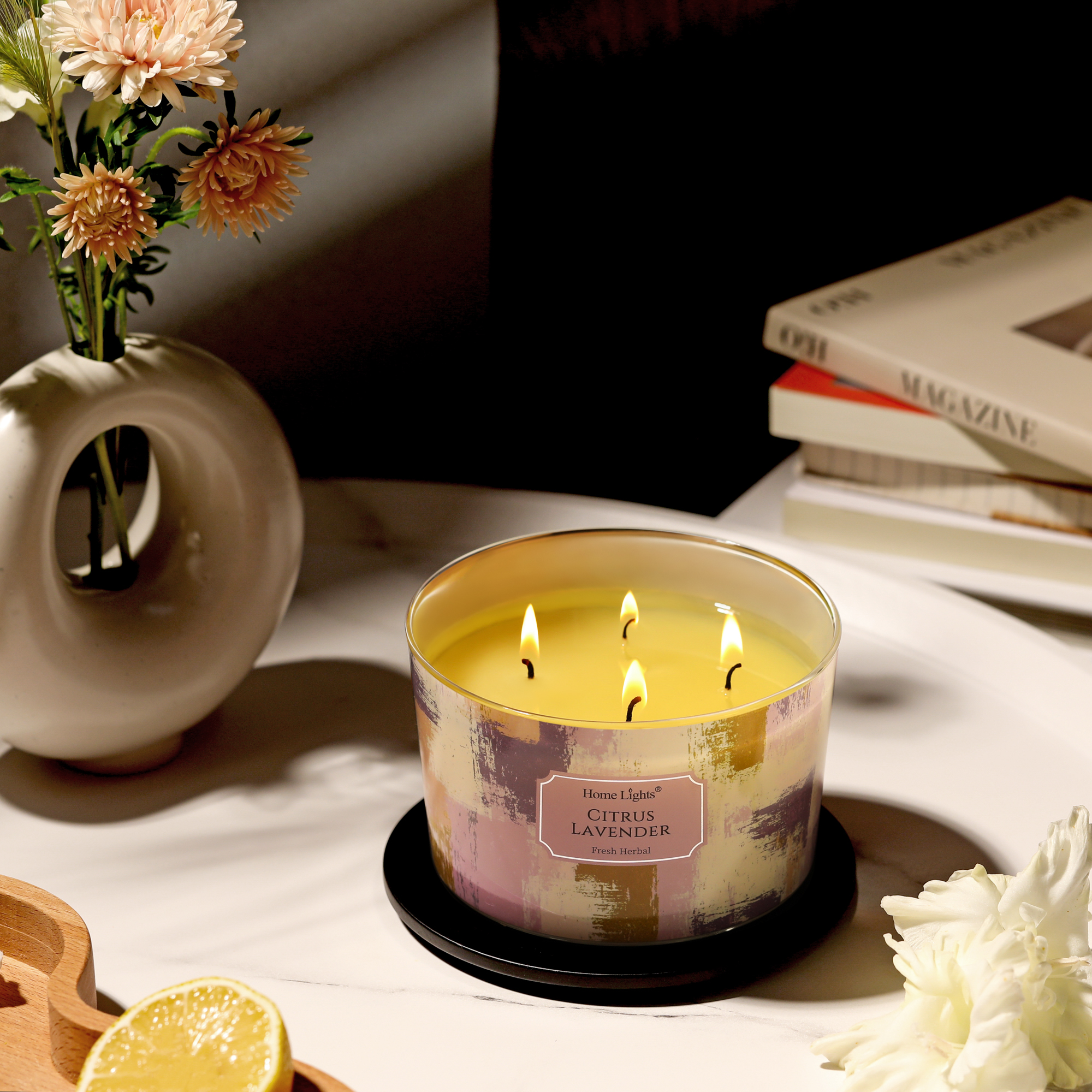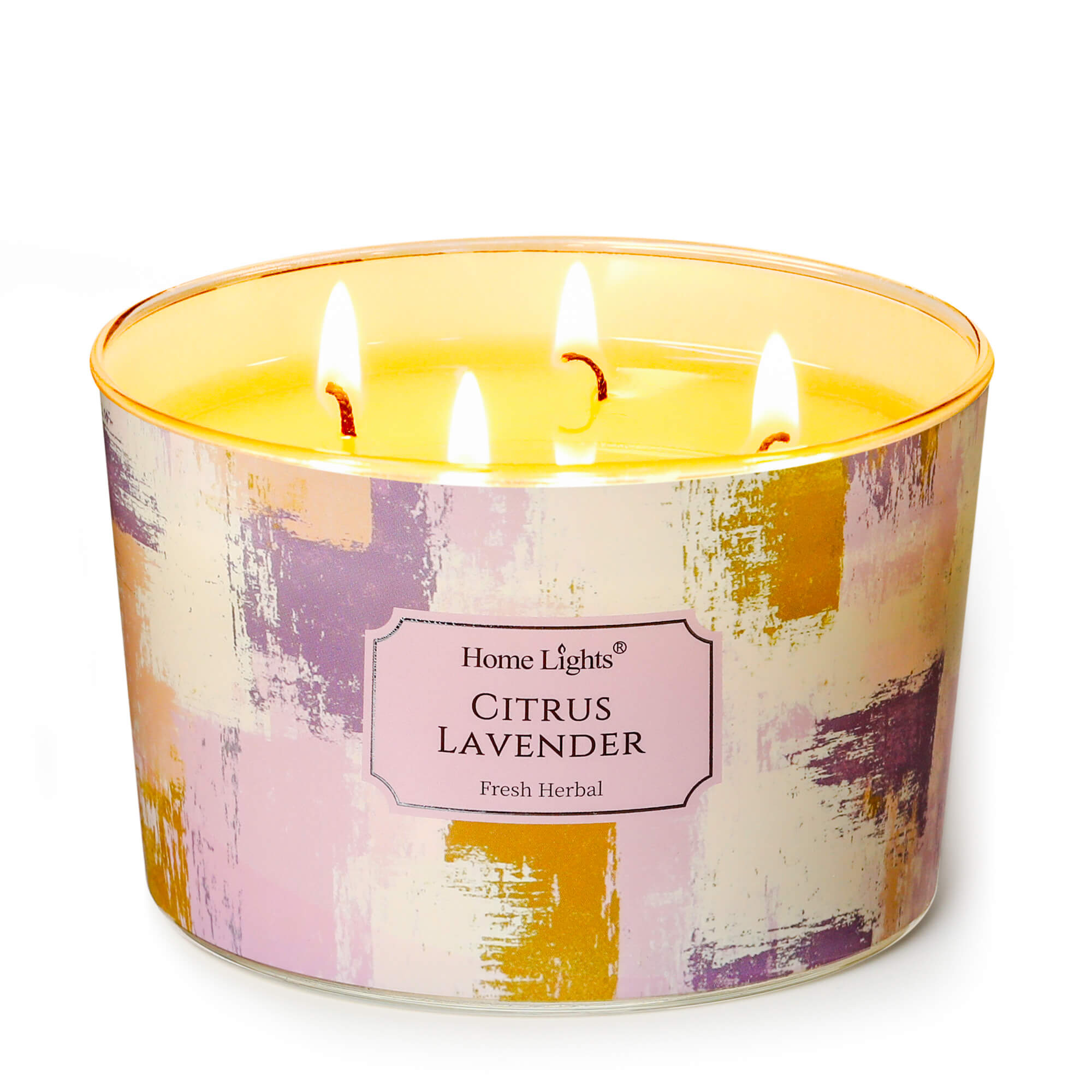 HomeLights Citrus Lavender Scented Candles | 18oz Soy Candles Scandinavian Minimalist Design 4-Wick Large Candle Jars | Ideal Candle Gifts for Events, Home Decor Stress, Relief & Relaxation