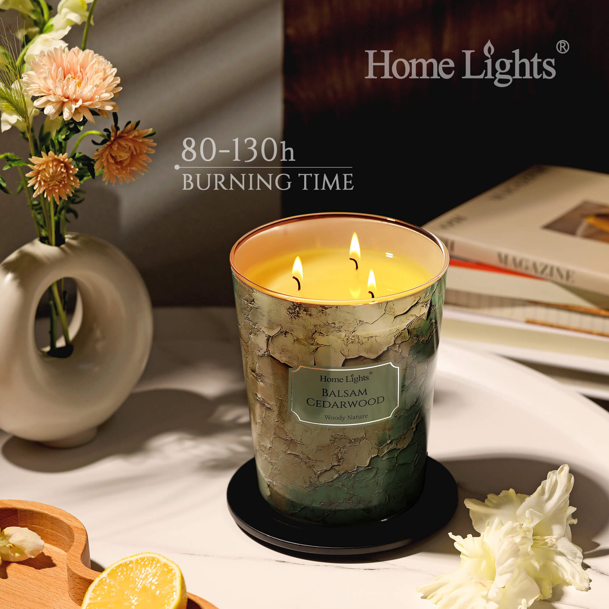 HomeLights Balsam Cedarwood Scented Candles | 34oz Soy Candles Industrial Chic 3-Wick Large Candle Jars | Ideal Candle Gifts for Events, Home Decor Stress, Relief & Relaxation