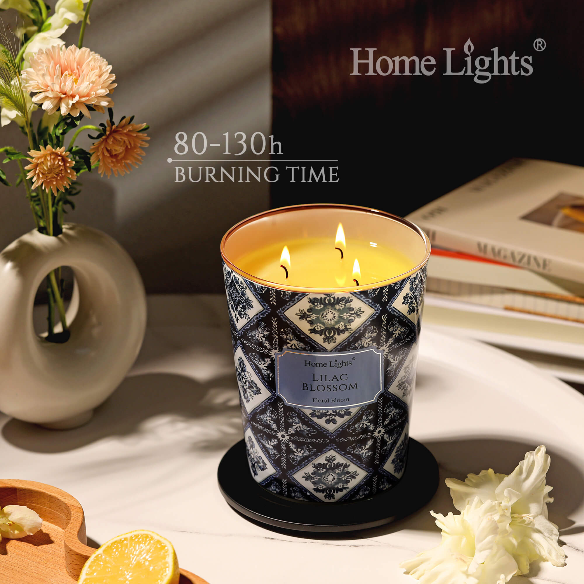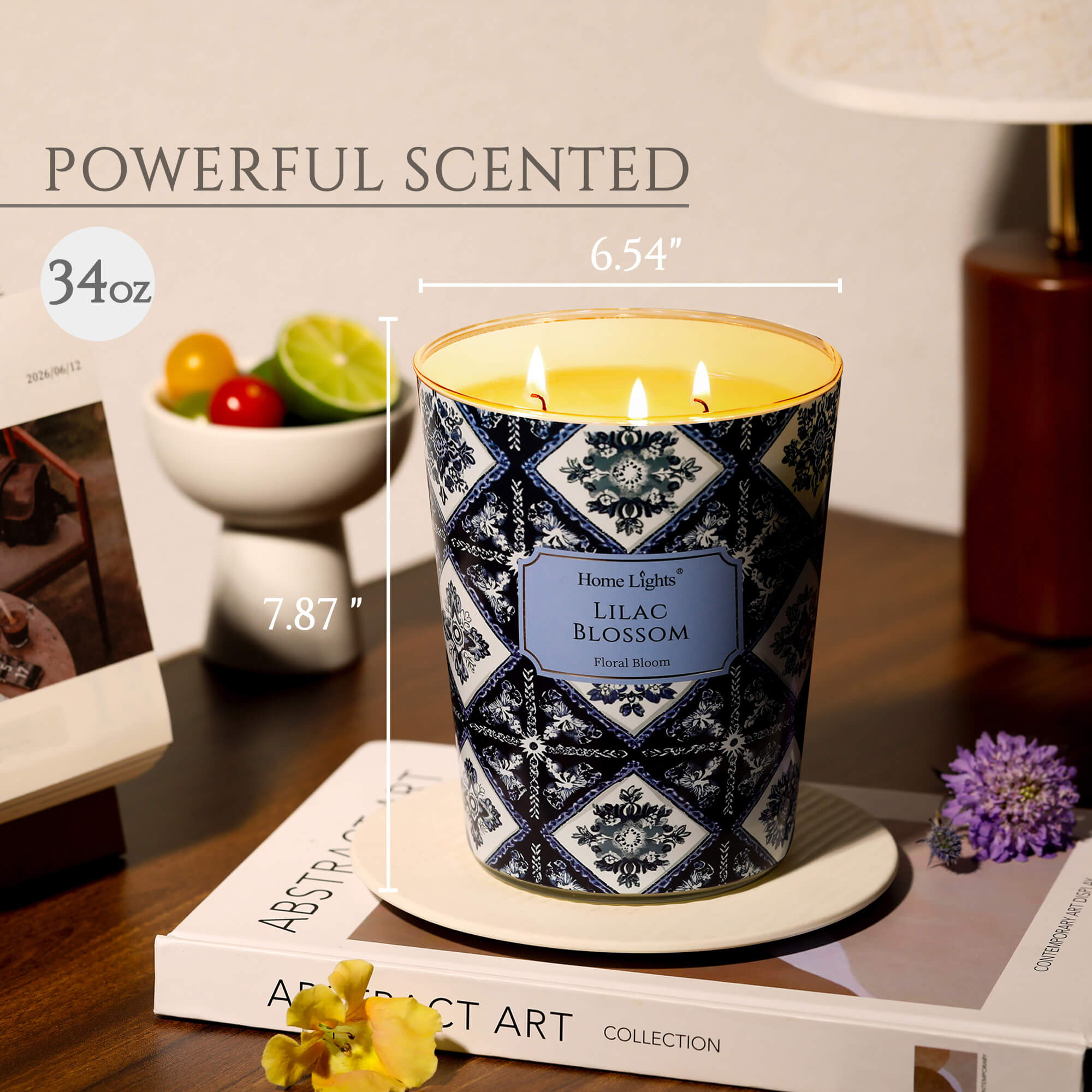 HomeLights Lilac Blossom Scented Candles | 34oz Soy Candles Bohemian Natural Textures 3-Wick Large Candle Jars | Ideal Candle Gifts for Events, Home Decor Stress, Relief & Relaxation
