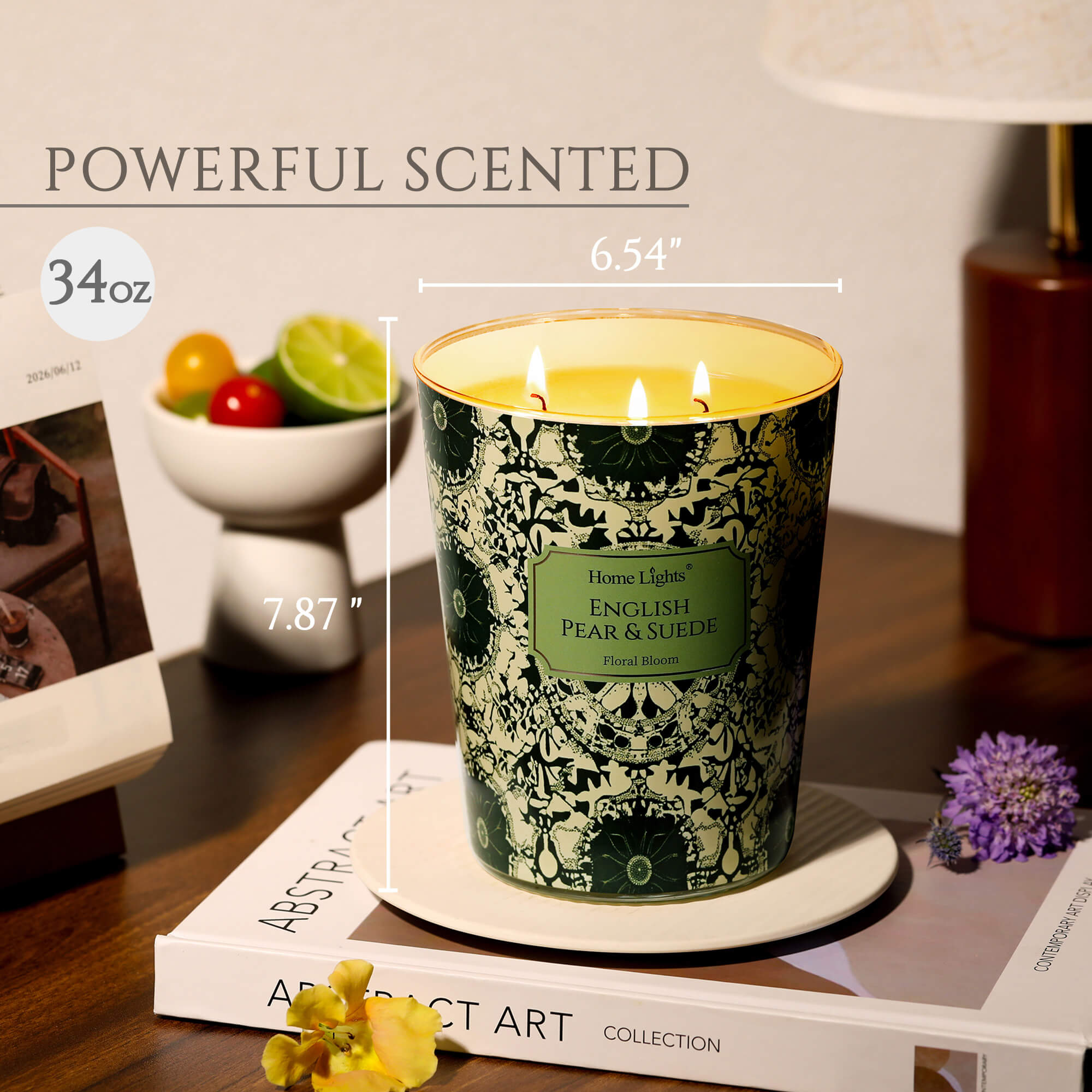 HomeLights Citrus Lavender Scented Candles | 34oz Soy Candles Scandinavian Minimalist Design 3-Wick Large Candle Jars | Ideal Candle Gifts for Events, Home Decor Stress, Relief & Relaxation