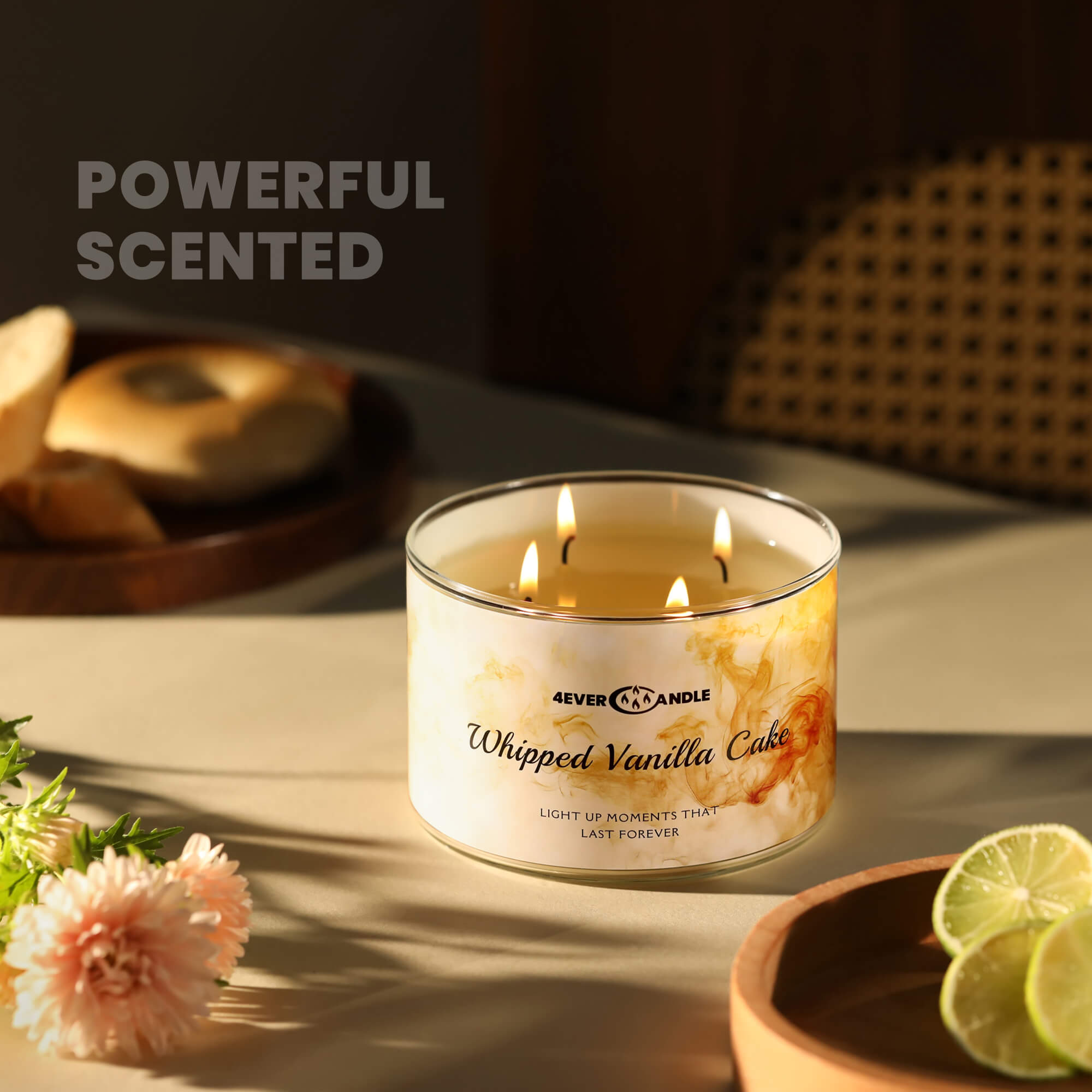Whipped Vanilla Cake Scented Candles, 18oz Soy Candles Non Toxic 4-Wick Large Candle Jars, Over 50 Hours of Burning Time, Ideal for Gifting, Events, Home Decor